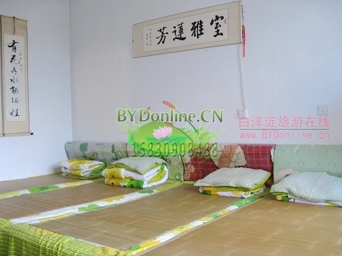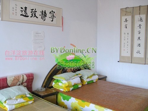 【第二種住宿】我們農(nóng)家院最大的特點(diǎn)就是潔凈衛(wèi)生。網(wǎng)站預(yù)訂價(jià):雙人標(biāo)準(zhǔn)間,100元一間(周一至周 四),120元一間(周五六日、端午節(jié)、十月一),按間收費(fèi)。室內(nèi)為兩張獨(dú)立的單人床,并在一起就變成了一張雙人床,如果孩子不太大的話, 一家三口住在一起也可以。室內(nèi)條件為全新格力空調(diào)二級(jí)能耗,彩電、閉路電視,太陽能熱水器24小時(shí)提供熱水,馬桶坐便器,洗臉池。有男用拖鞋和女用拖鞋各 一雙,不提供一次性洗漱用品,如果需要可以花錢代購(gòu)。 我們的農(nóng)家院,住宿和吃飯?jiān)谝粋(gè)地方,前面飯店,后面住宿,飯菜標(biāo)準(zhǔn)為早餐一人8元錢,管飽。正餐點(diǎn)餐大約平均每 人30元左右,以白洋淀農(nóng)家特色野生魚蝦等為主。,現(xiàn)吃現(xiàn)殺,絕對(duì)新鮮。以上價(jià)格不含發(fā)票,要正規(guī)發(fā)票請(qǐng)加稅點(diǎn)8.5%,多要多開。夏天到來,在有蚊子的時(shí)候,免費(fèi)提供電蚊香。為了您節(jié)省費(fèi)用,可自備酒水?稍诒巨r(nóng)家院自助燒烤,設(shè)施自備,不收費(fèi)?勺詭п灳撸T前碼頭釣魚,不收費(fèi)。打造白洋淀誠(chéng)信旅游,明碼標(biāo)價(jià),言而有信,量力消費(fèi)。網(wǎng)站說什么樣兒,實(shí)際就是什么樣兒。白洋淀旅游老字號(hào)——白洋淀在線,竭誠(chéng)為您服務(wù)。
