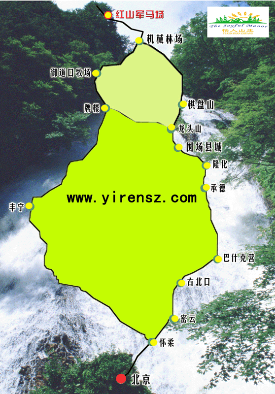 走懷柔--豐寧---圍場(chǎng)牌樓(鄉(xiāng))--御道口牧場(chǎng)--機(jī)械林場(chǎng)---紅山軍馬場(chǎng). 北京-木蘭圍場(chǎng)·怡人山莊路線圖